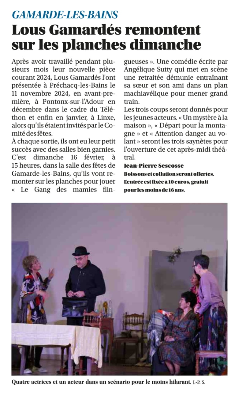 Découvrez toutes les actualités et articles de presse sur la troupe Lous Gamardes ici.