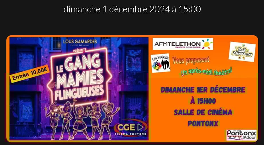 Réprésentation au ciné Pontonx le 1er Décembre 2024 dans le cadre du téléthon